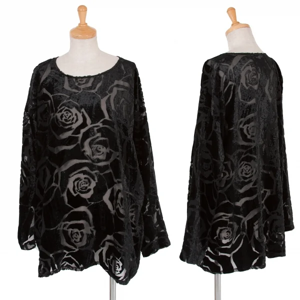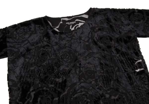 【SALE】ジュンヤワタナベコムデギャルソンJUNYA WATANABE COMME des GARCONS バラ柄フロッキーシースルートップス 黒XS