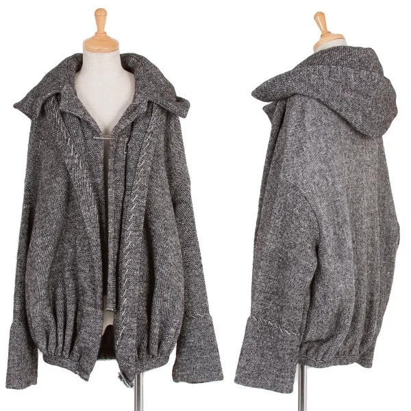 ワイズY’s フード着脱ステッチデザインドルマンジャケット 黒白2