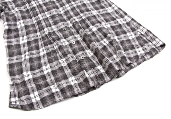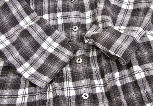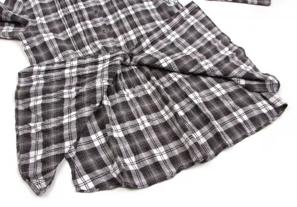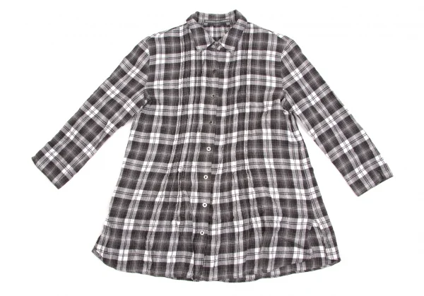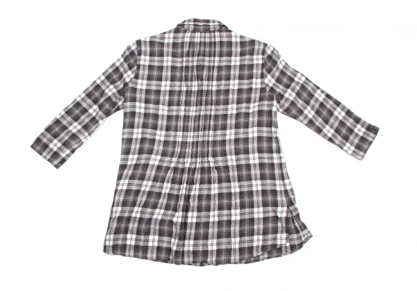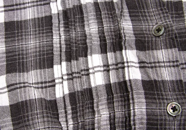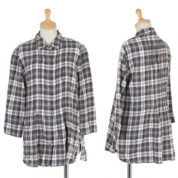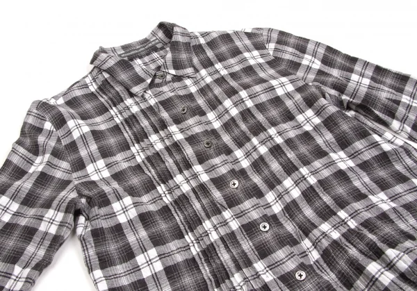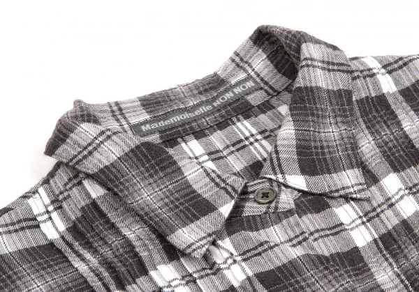 マドモアゼルノンノンMademoiselle NON NON ピンタックシワ加工チェックシャツ グレー白L位