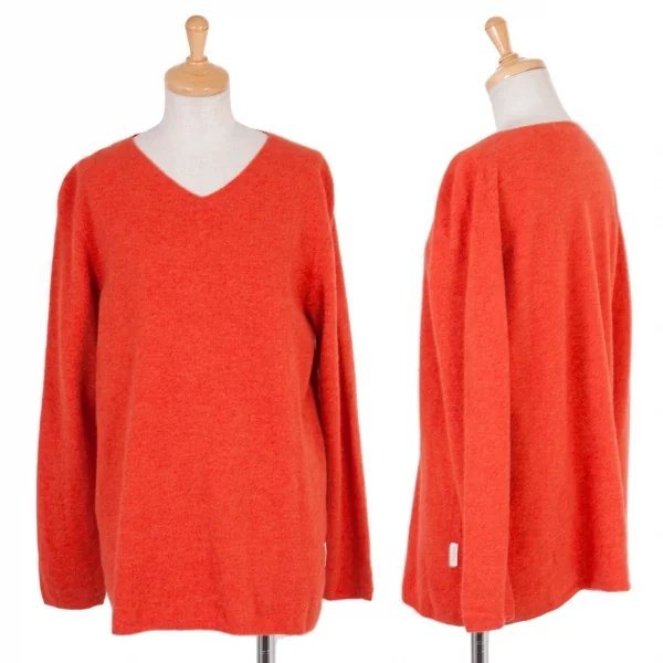 【SALE】マドモアゼルノンノンMademoiselle NON NON ウールVネックニットセーター 朱L