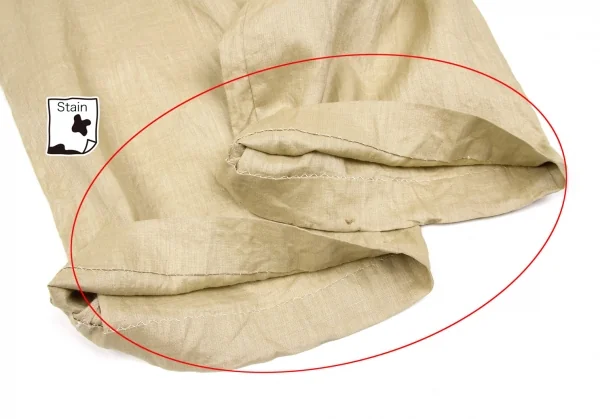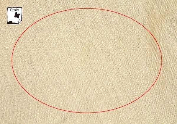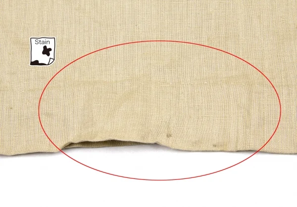シミ、汚れの他、全体的に薄い変色、薄シミがあります(写真参照)。クリーニング済み