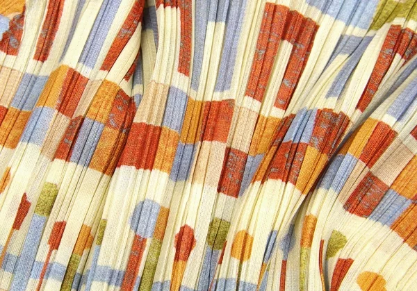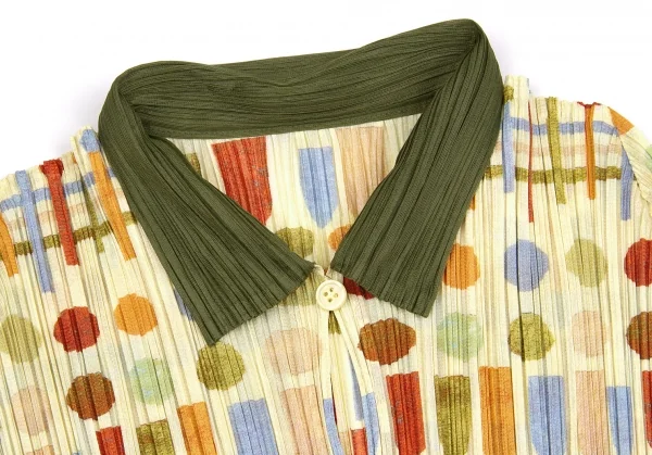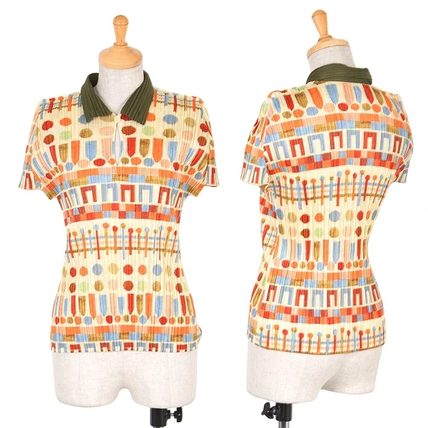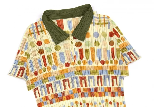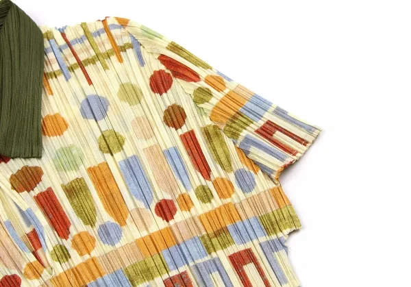 プリーツプリーズPLEATS PLEASE 図形プリント半袖スキッパーシャツ クリーム緑他3