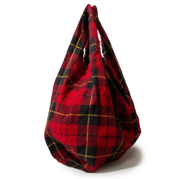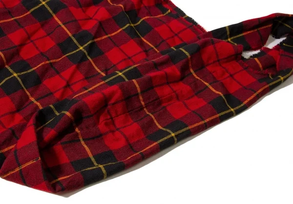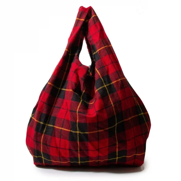 コムデギャルソンCOMME des GARCONS ウールタータンチェックビッグトートバッグ 赤黒黄