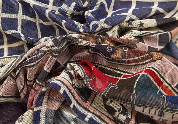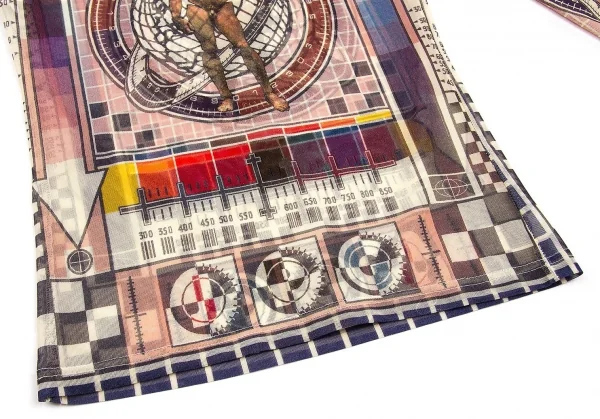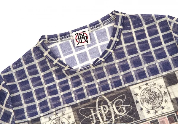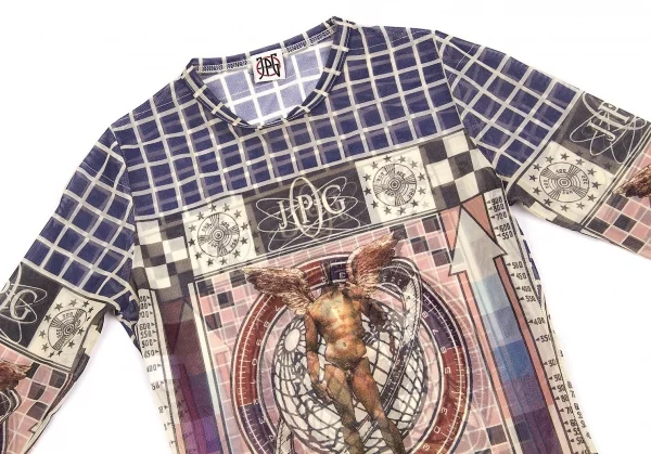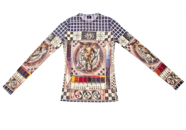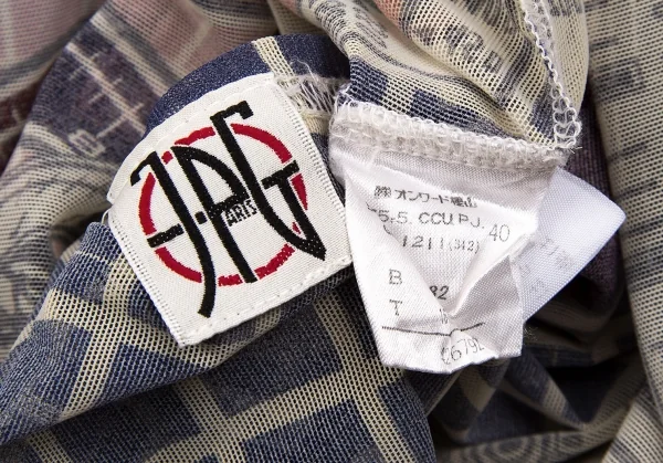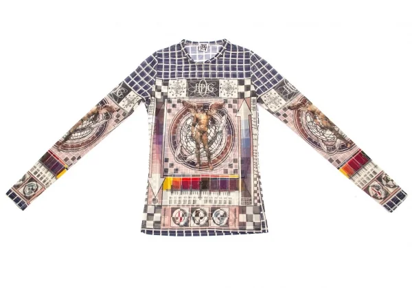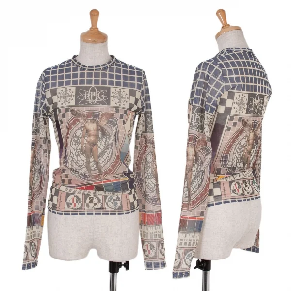 ジャンポールゴルチエJean Paul GAULTIER PARIS グラフィックプリントパワーネットカットソー ベージュ紺赤他40