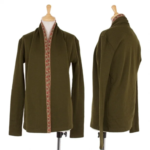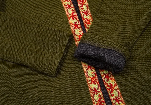 【最終値下げ】ヨウジヤマモト ファムYohji Yamamoto FEMME ウールチロリアンテープニットカーディガン カーキ赤3