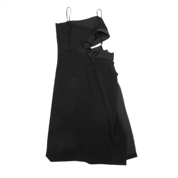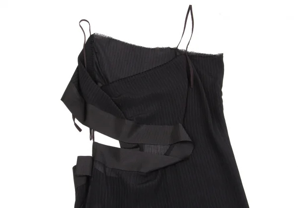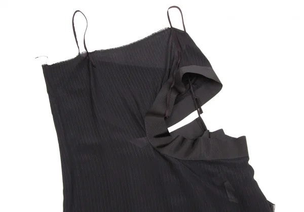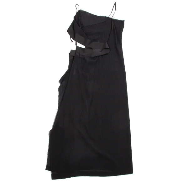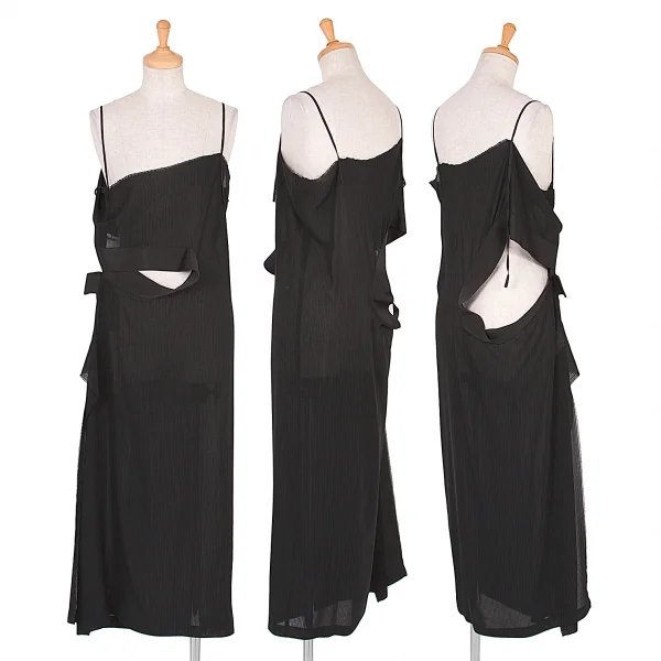ヨウジヤマモト ファムYohji Yamamoto FEMME 変形ストライプシースルーワンピース 黒1