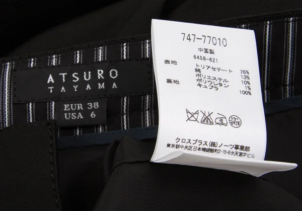 表地 トリアセテート76% 綿13% ポリエステル10% ポリウレタン1% 裏地 キュプラ100%
