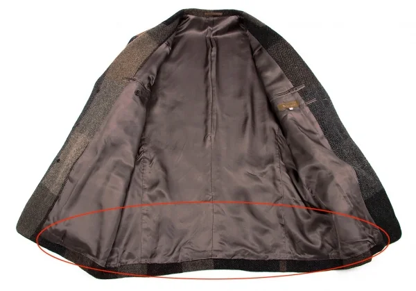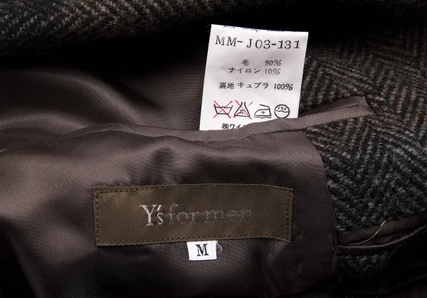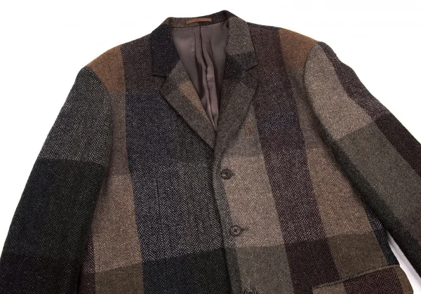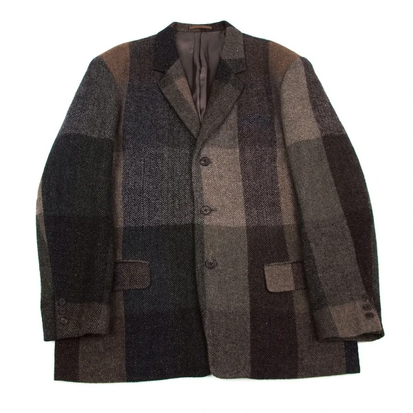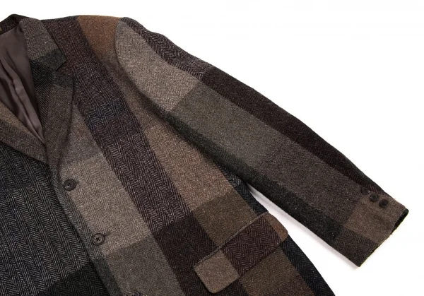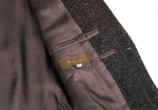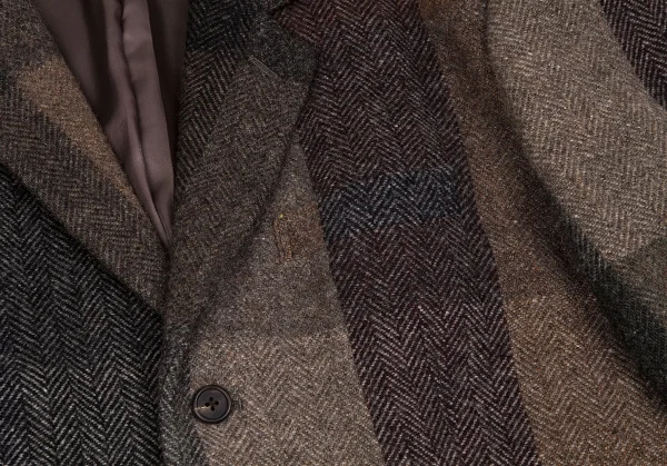 ワイズフォーメンY's for men ウールヘリンボーンパネル切替ジャケット 茶グレー他M
