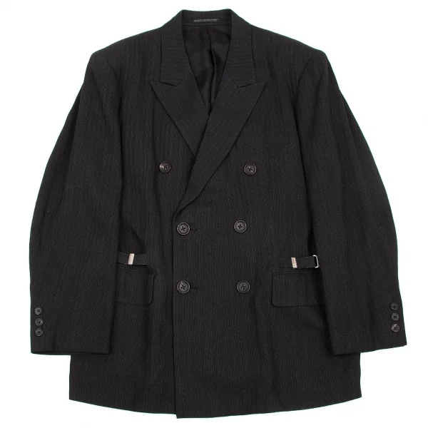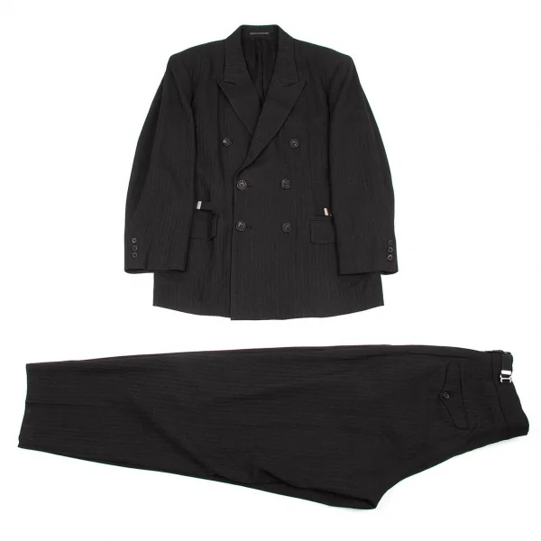 ヨウジヤマモトプールオムYohji Yamamoto pour homme ベルトデザインストライプセットアップスーツ チャコールS