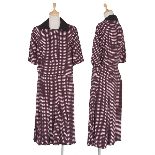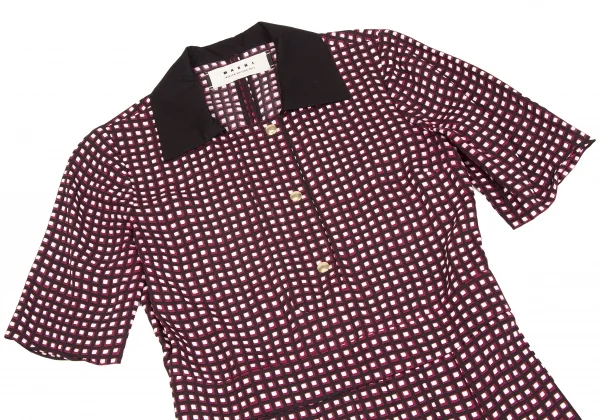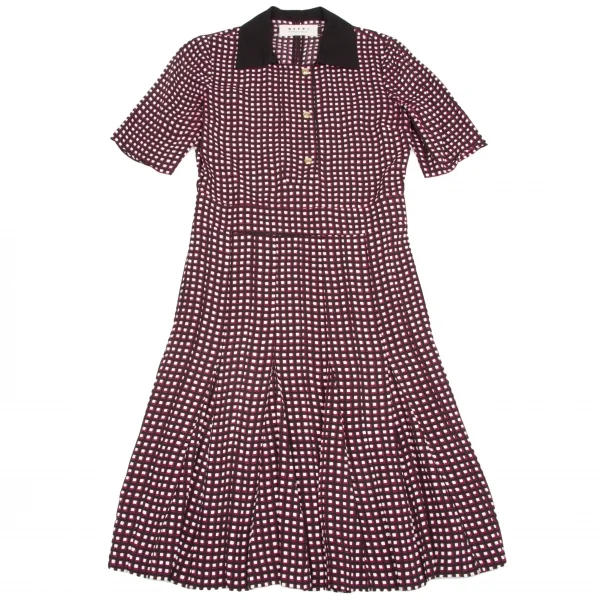 マルニMARNI レーヨンチェックベンチレーションワンピース 黒白赤40