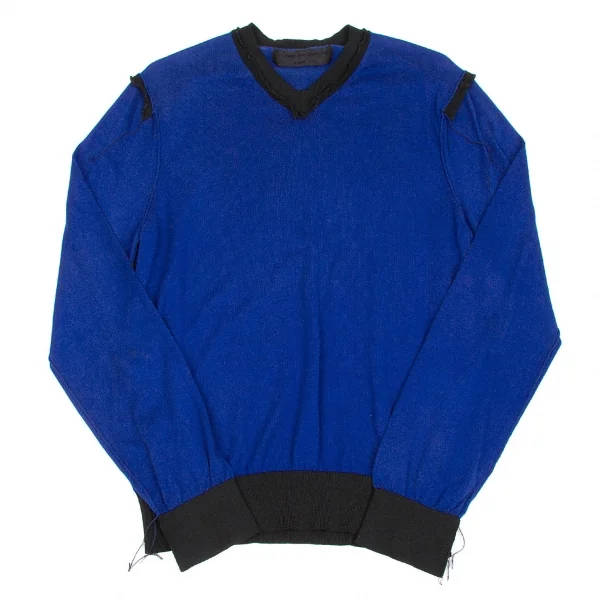 コムデギャルソン オムプリュスCOMME des GARCONS HOMME PLUS 製品染めインサイドアウトVネックニットソー 青黒M位