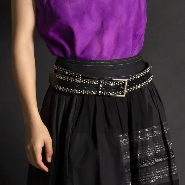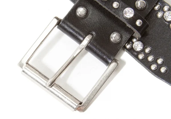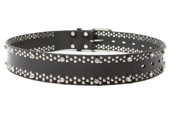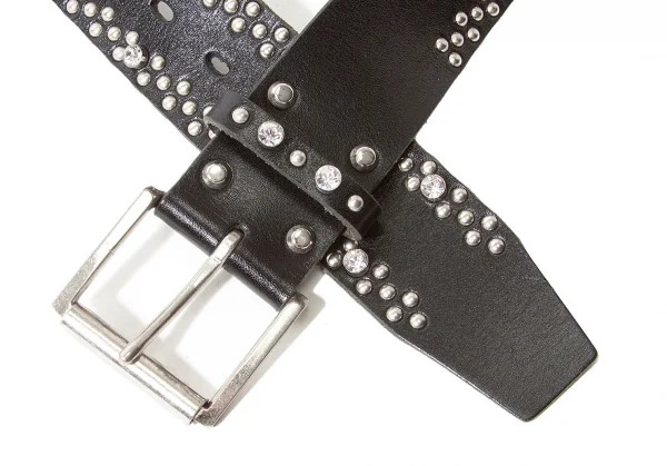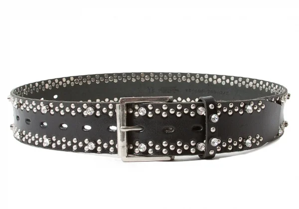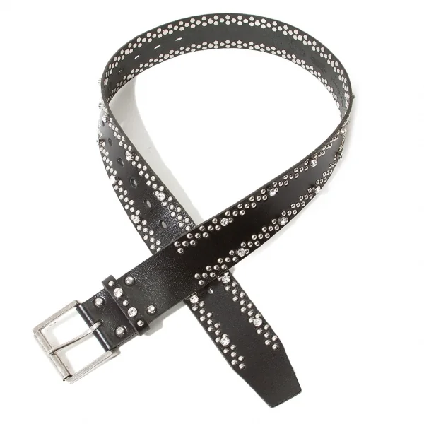 【SALE】ワイズY's ビジュースタッズレザーベルト 黒シルバー