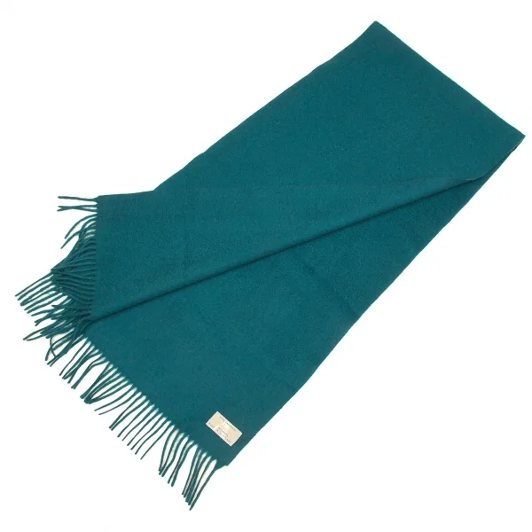 アクアスキュータムAquascutum カシミヤフリンジマフラー エメラルドグリーン