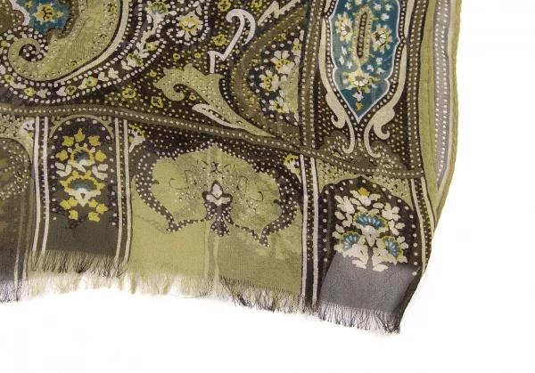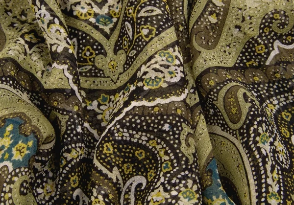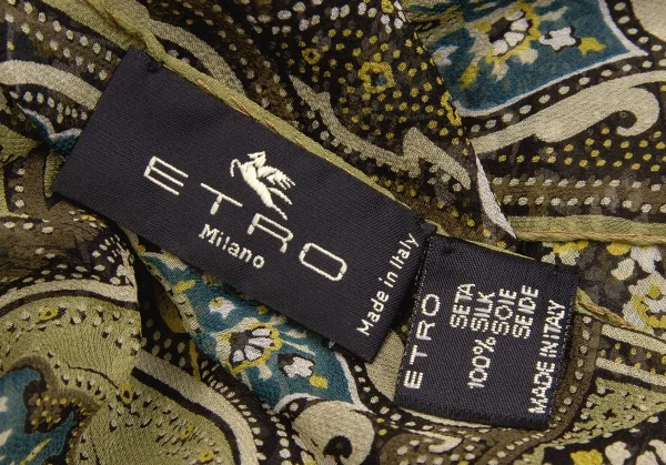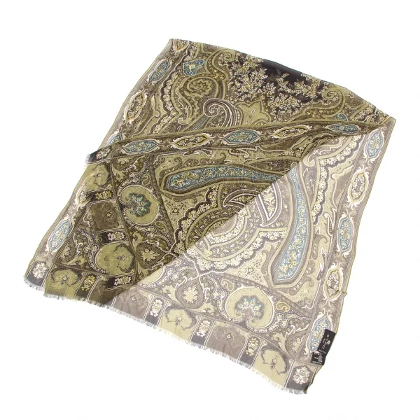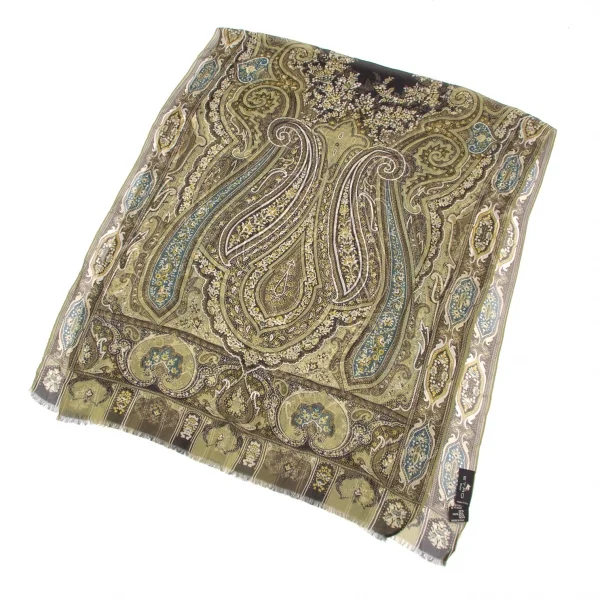 エトロETRO ペーズリー柄シルク大判ストール 濃淡カーキ黒他