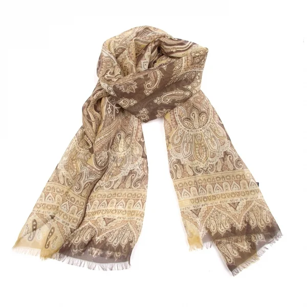 【SALE】エトロETRO シルクプリントストール 濃淡茶ベージュ他