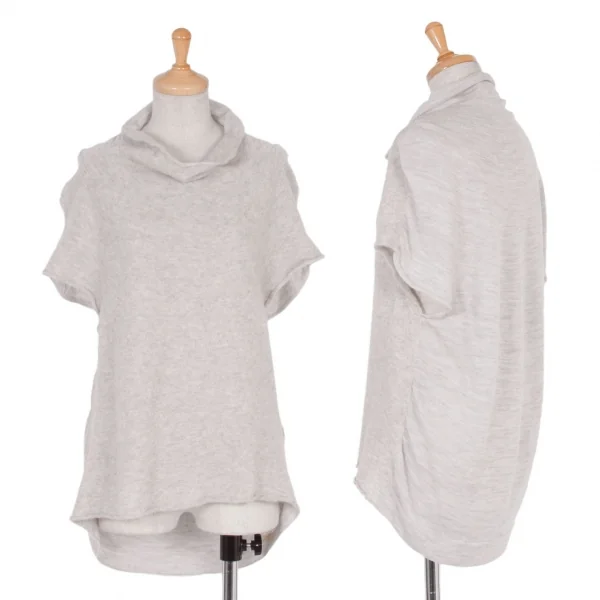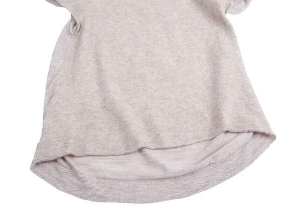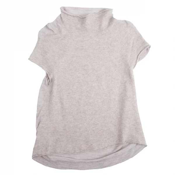 【SALE】プランテーションPlantation ウールナイロン前後切替ハイネックニットTシャツ 杢ベージュグレーM