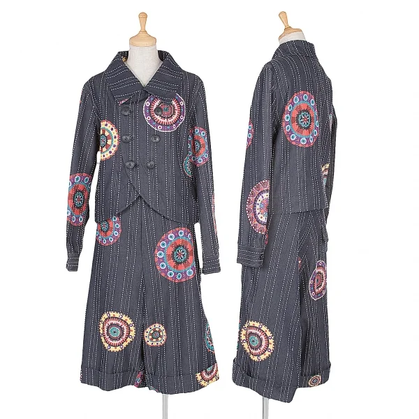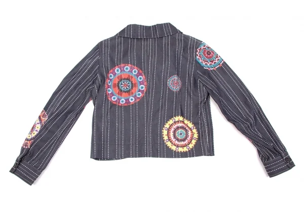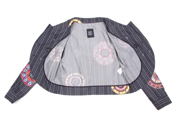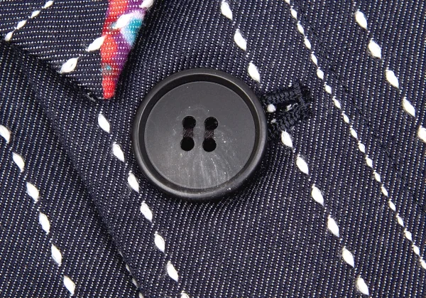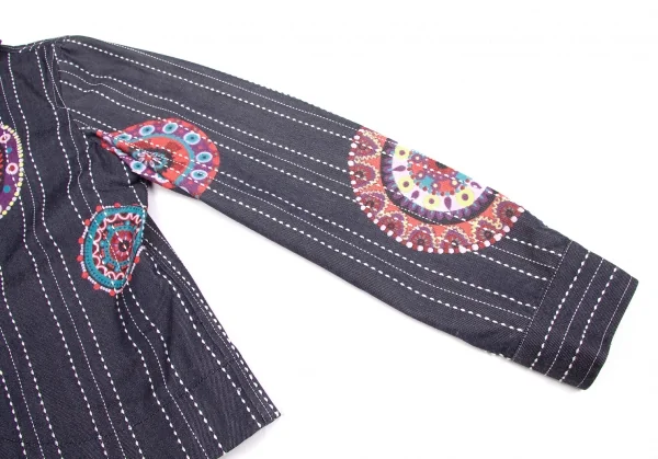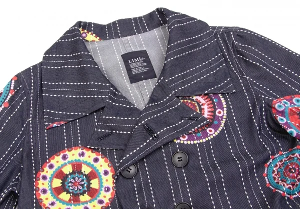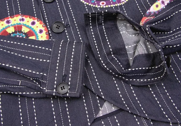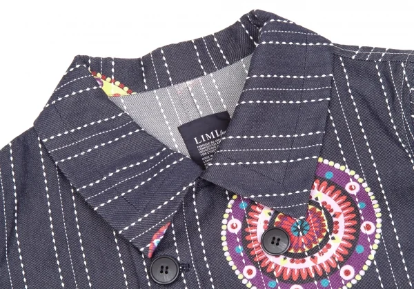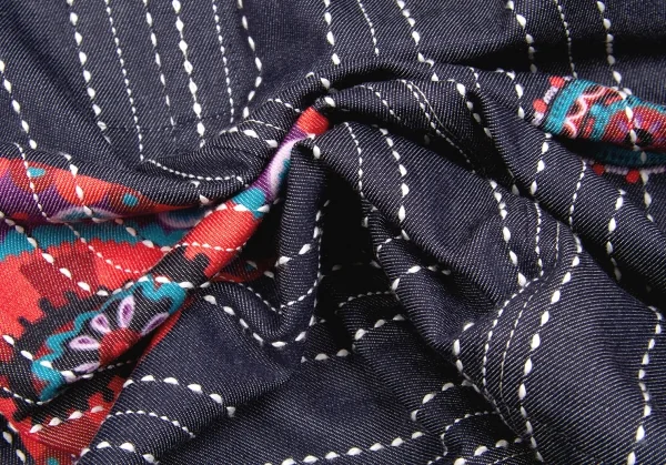 【SALE】リミフゥLIMI feu プリントステッチデザインデニムジャケット インディゴ黄赤他S