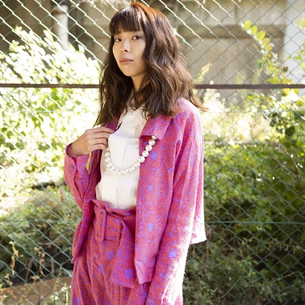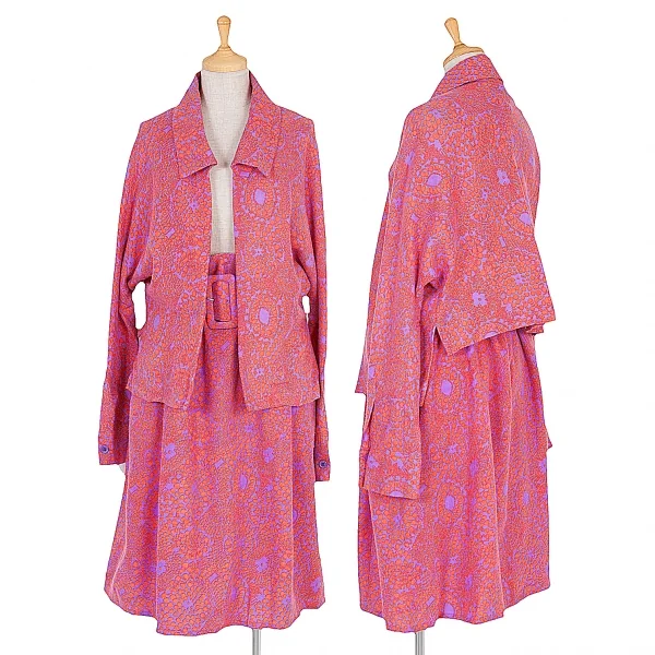 【SALE】リミフゥLIMI feu ウールサイケプリントボタンレスジャケット ピンク淡紫S