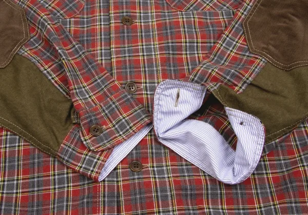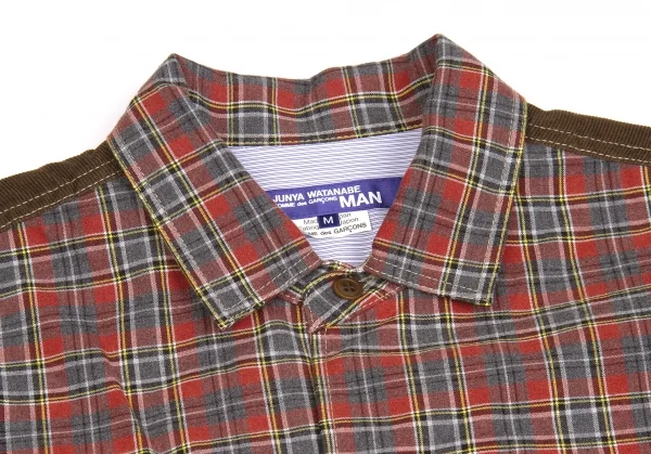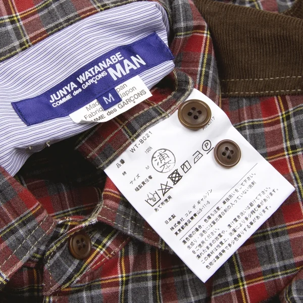 新品!【SALE】新品!ジュンヤワタナベ マン JUNYA WATANABE MAN 切替デザインチェックシャツ エンジグレーM