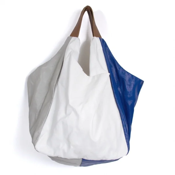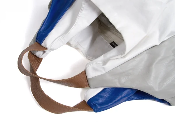 トリコ コムデギャルソンtricot COMME des GARCONS 配色フェイクレザーバッグ 白青グレー茶