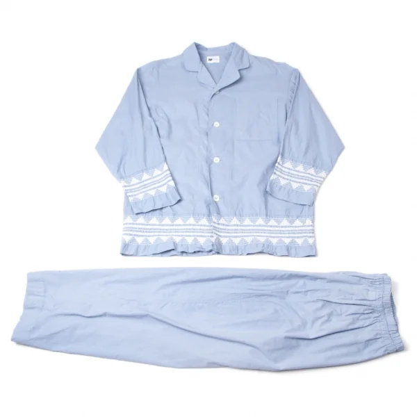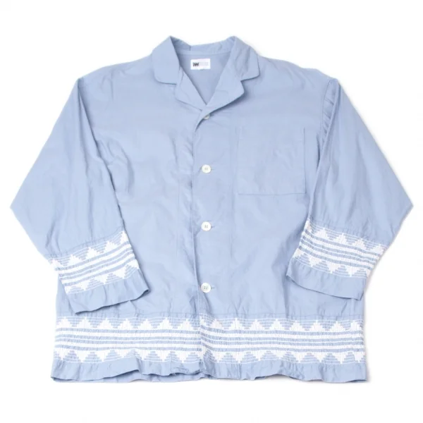 イッセイミヤケISSEY MIYAKEアイムプロダクト im product オープンカラーセットアップ ブルー白M位