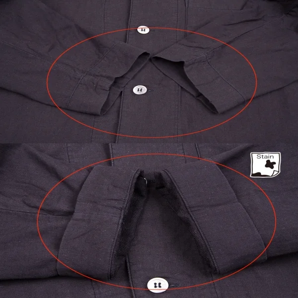 ジャケット襟、袖薄汚れ、袖先小穴、パンツ全体的に色褪せ、薄汚れがあります(写真参照)。クリーニング済み