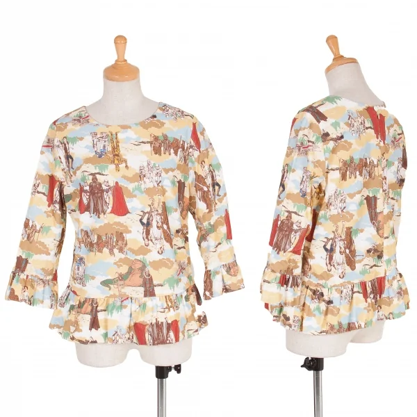 新品!レブリカブラック&ビームスボーイles Briqu’a* braque & BEAMS BOY スターウォーズプリントフリルブラウス ベージュマルチM位