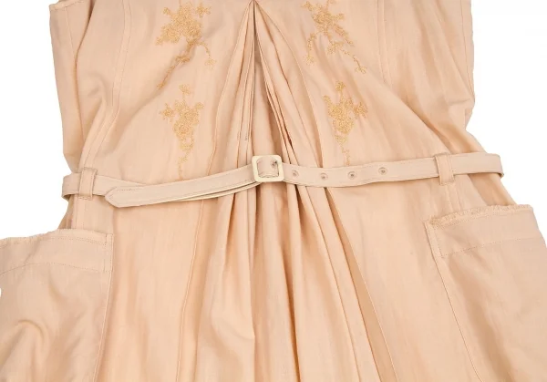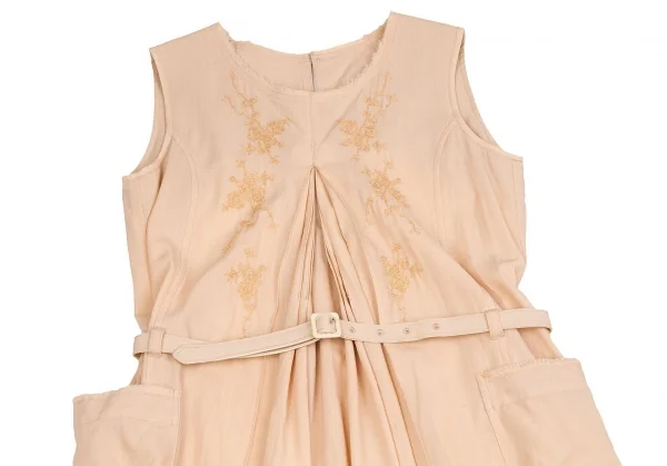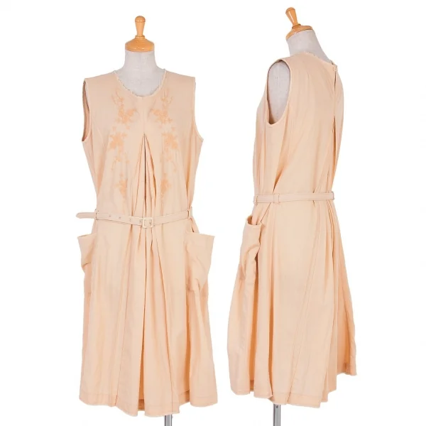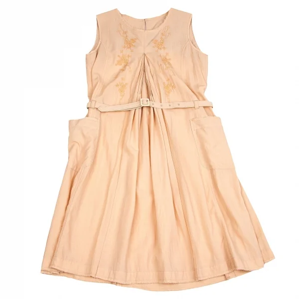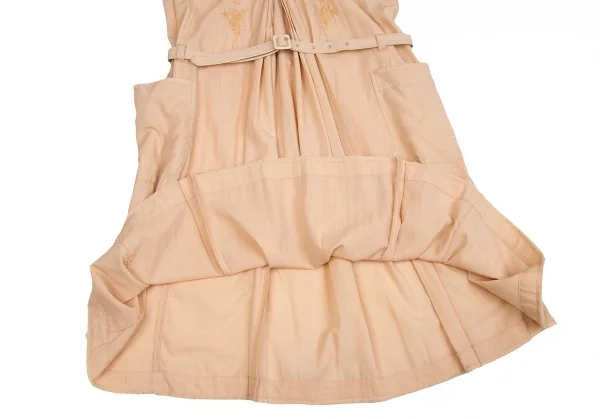 【SALE】スナオクワハラsunao kuwahara フラワーエンブロイダリープリーツワンピース ピンクベージュM