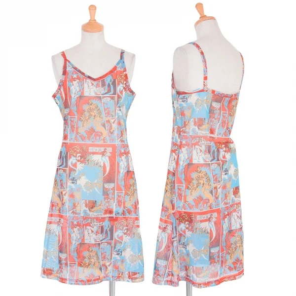 【SALE】ジャンポールゴルチエJean Paul GAULTIER PARIS アメコミプリントパワーネットキャミワンピース 水色濃オレンジ他40