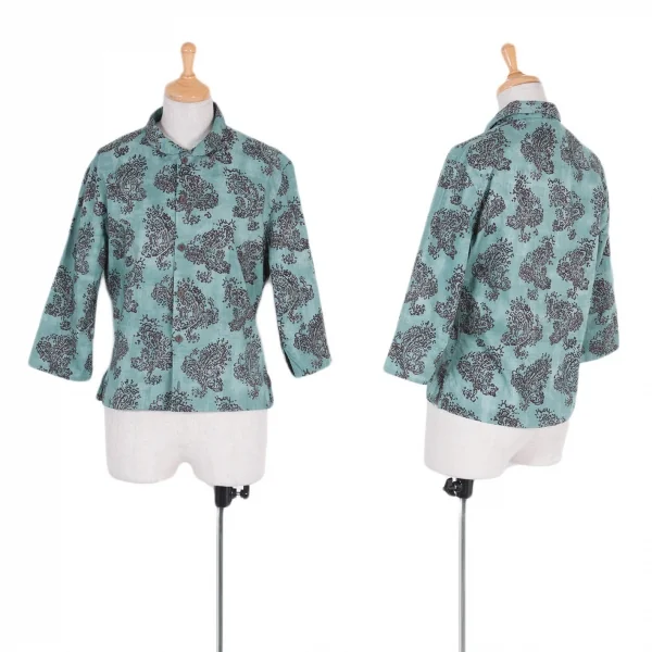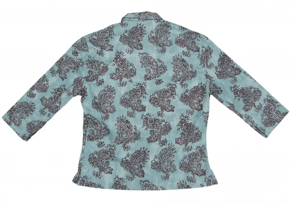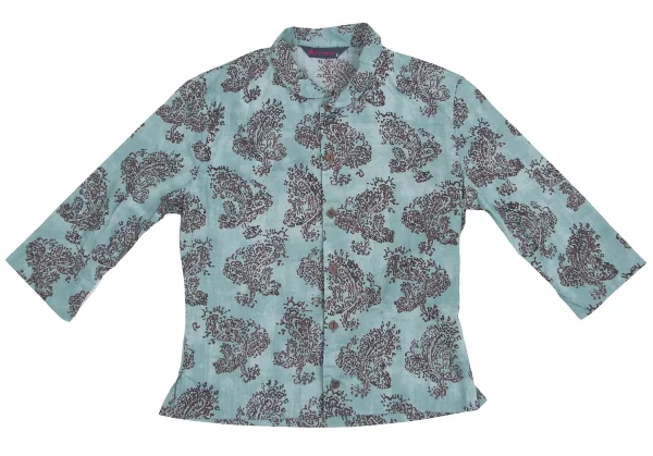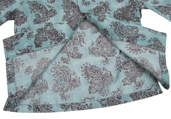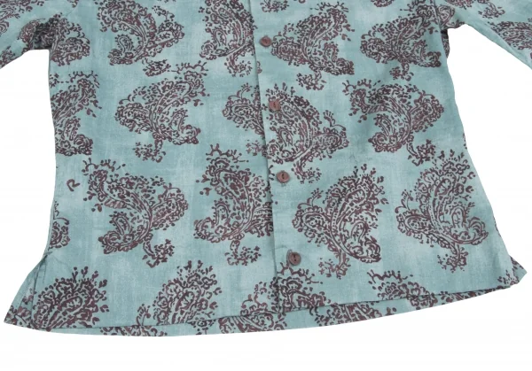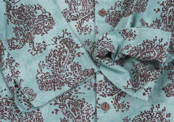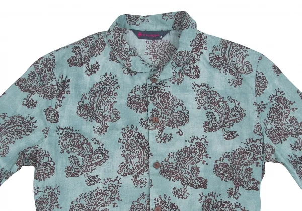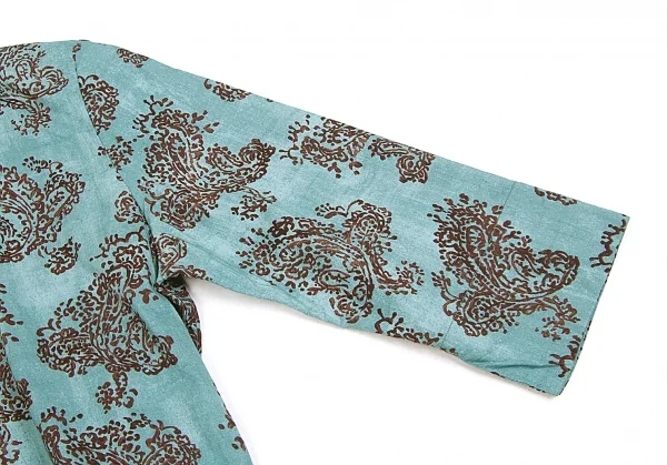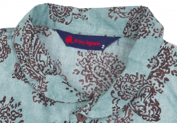 R by 45rpm ペイズリー柄染めラウンドカラー七分袖シャツ 水色茶2
