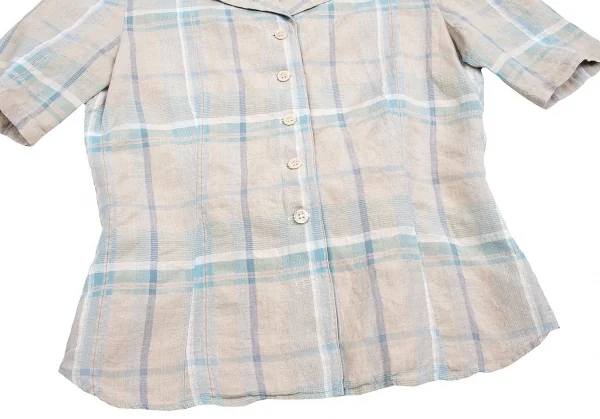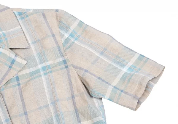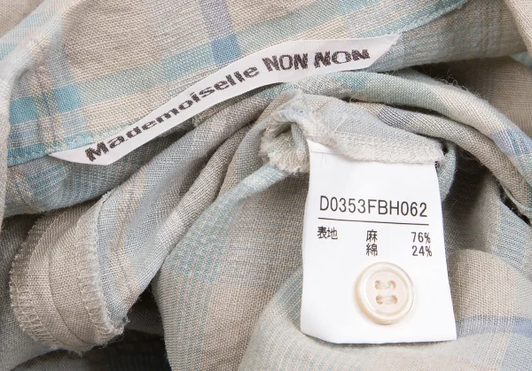 【SALE】マドモアゼルノンノンMademoiselle NON NON リネンコットン半袖チェックシャツ サンドベージュブルー他38(M)