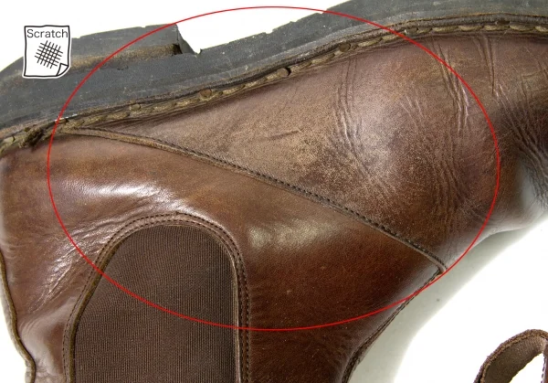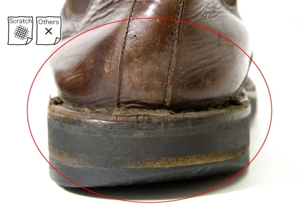 ソール減り、全体的にキズ、スレがあります(写真参照)。