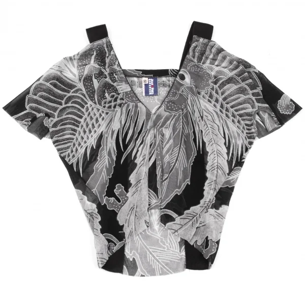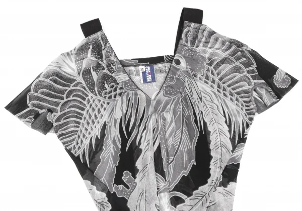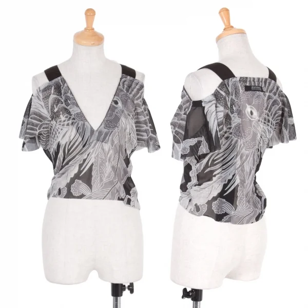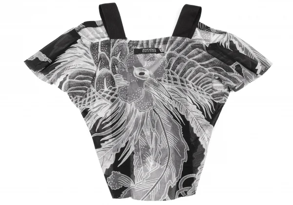 ジーンズポールゴルチエJean's Paul GAULTIER 植物柄パワーネットオフショルダートップス グレー黒他40