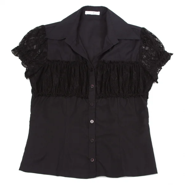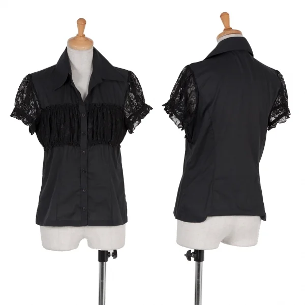 【SALE】ナラカミーチェNARACAMICIE レース切替フレンチスリーブブラウス 黒M位