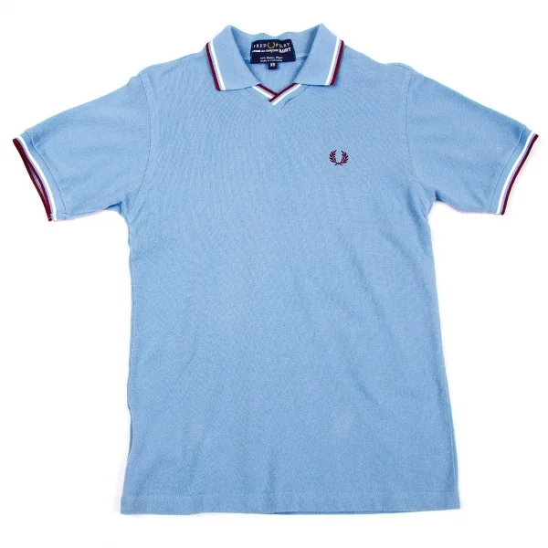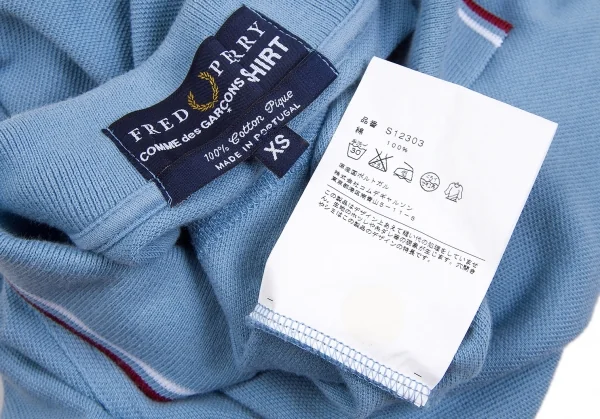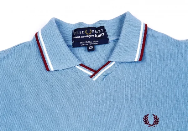 コムデギャルソンシャツ×フレッドペリーCOMME des GARCONS SHIRT×FRED PERRY 鹿の子ボタンレスポロシャツ ブルー白エンジXS