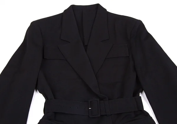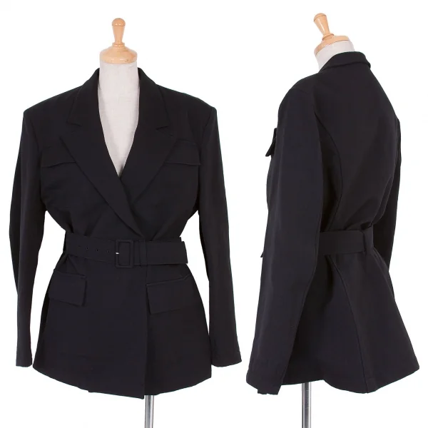 ワイズY's ウールコットンフラップポケットベルテッドジャケット 黒M位