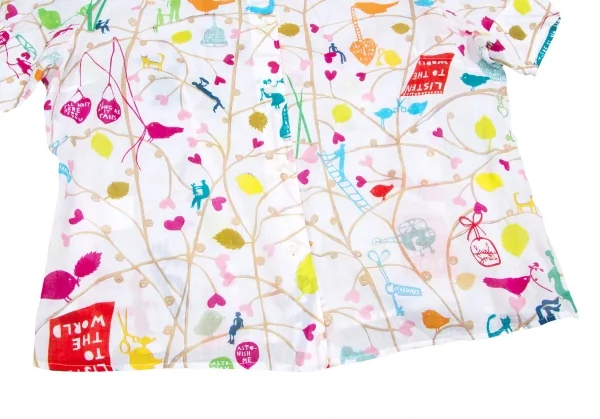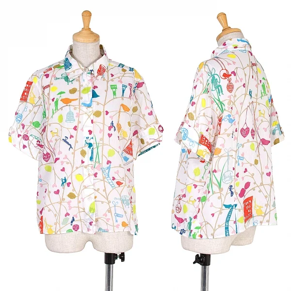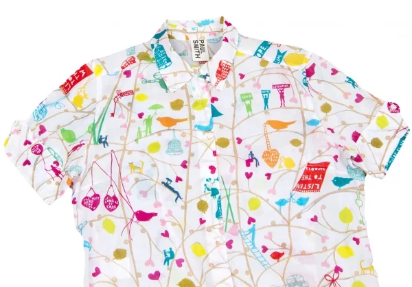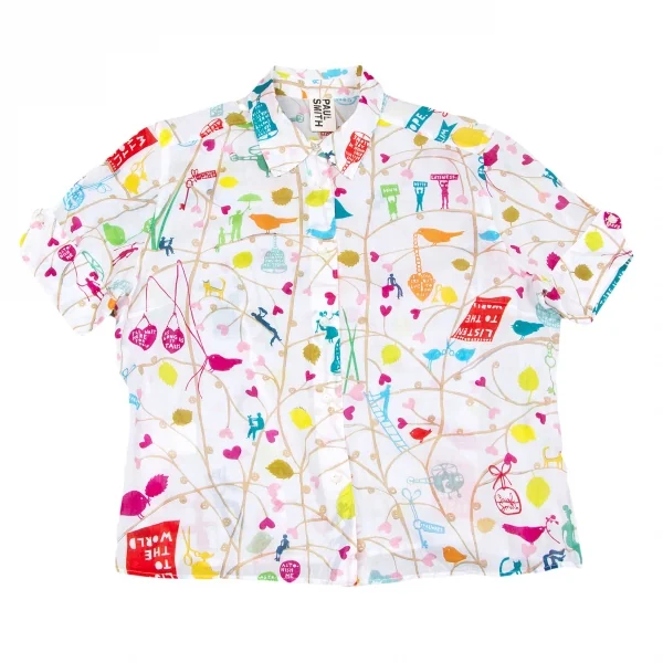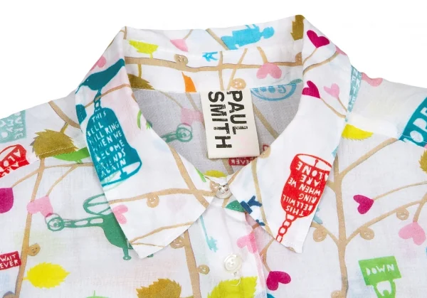 ポールスミスPaul Smith ポッププリント半袖シャツ 白マルチ48