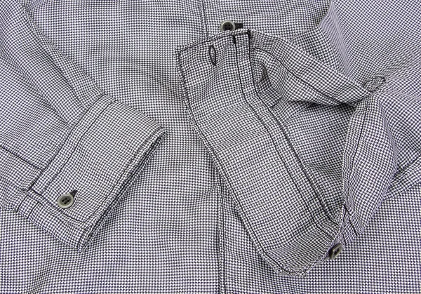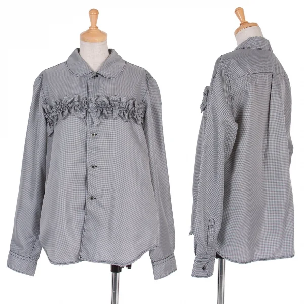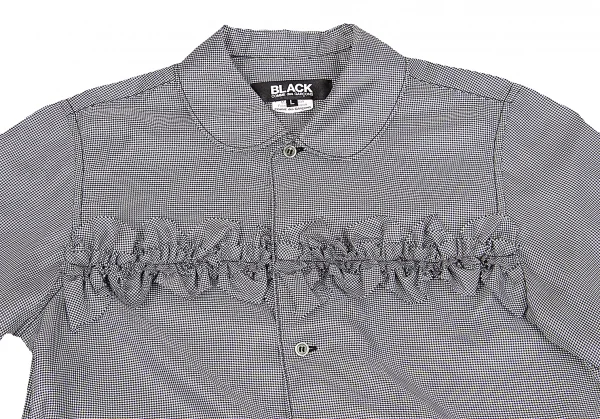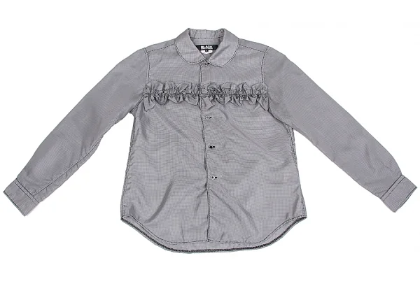 ブラック コムデギャルソンBLACK COMME des GARCONS パピートゥースギャザー装飾ラウンドカラーシャツ 黒白L