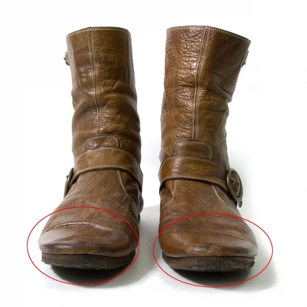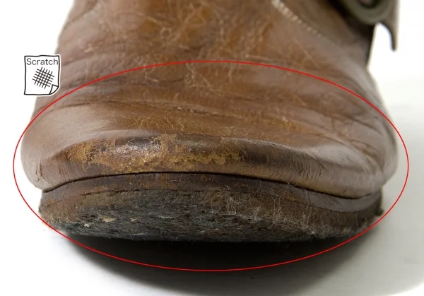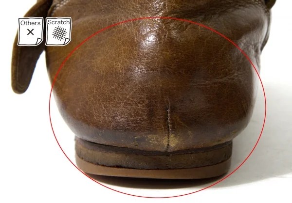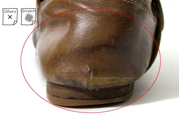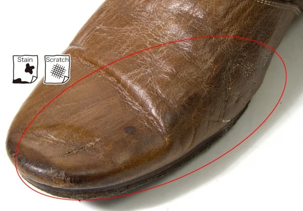 爪先、踵スレ、キズ、踵減り、右足内側破れがあります(写真参照)。