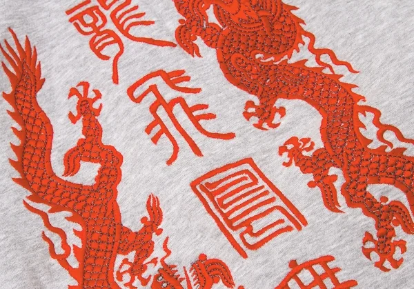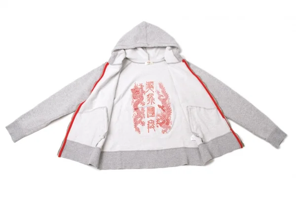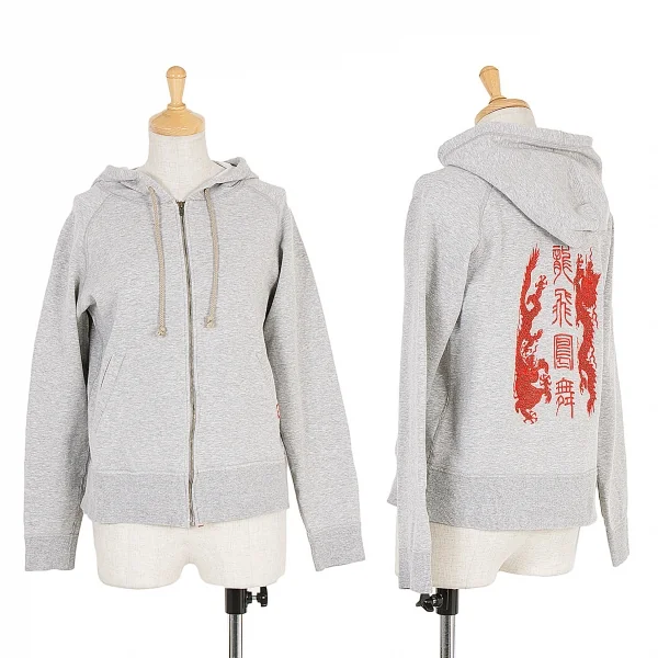 ヴィヴィアンタムVIVIENNETAM バックドラゴン刺繍ジップアップパーカー 杢グレー0