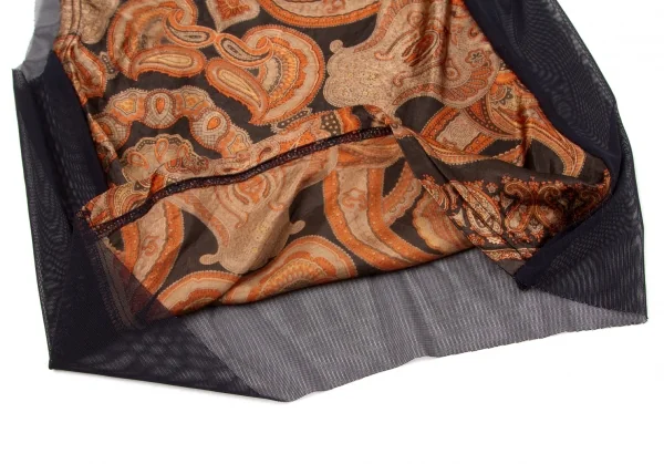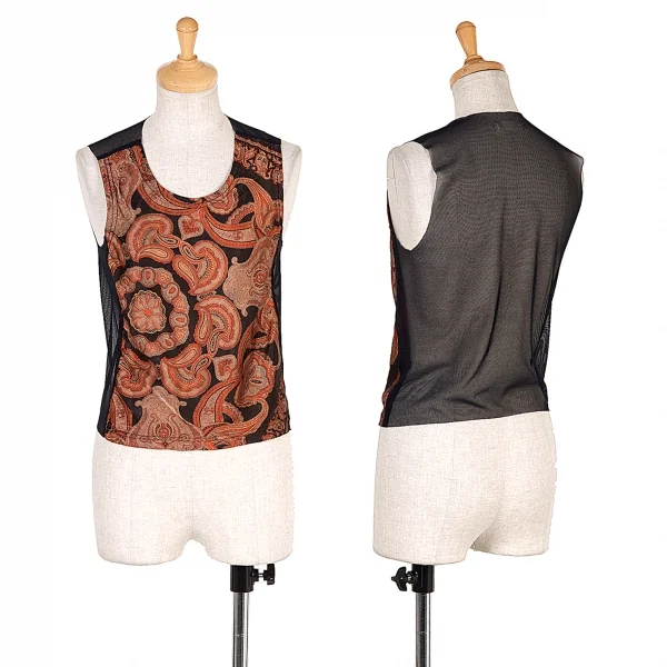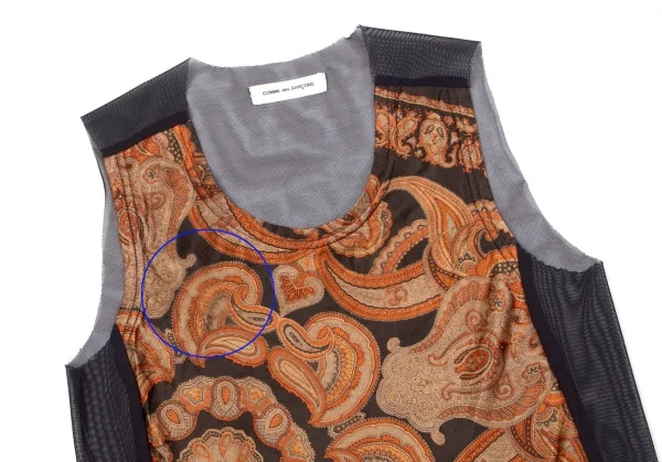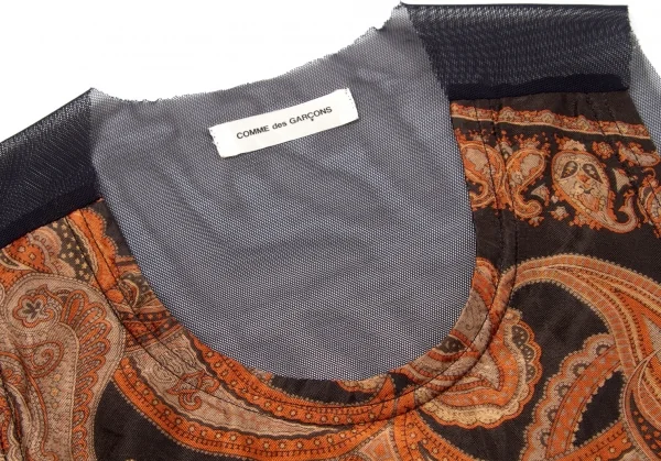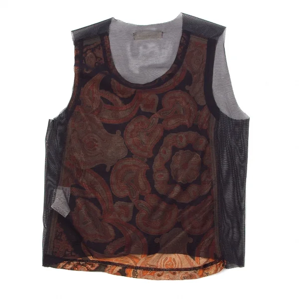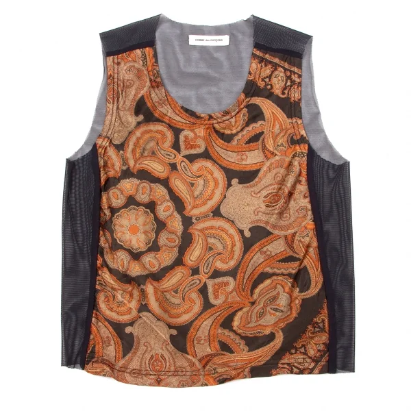 コムデギャルソンCOMME des GARCONS バックシースルー切替ペイズリー柄ノースリーブ 黒レンガグレー他M位