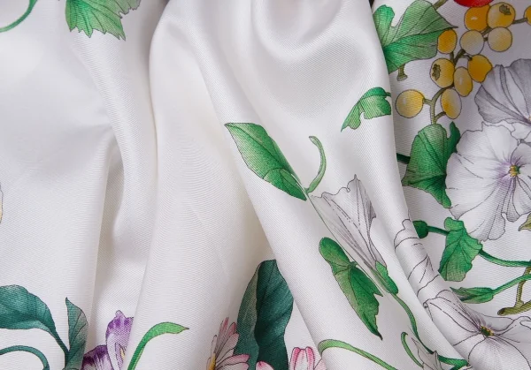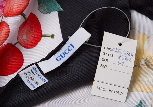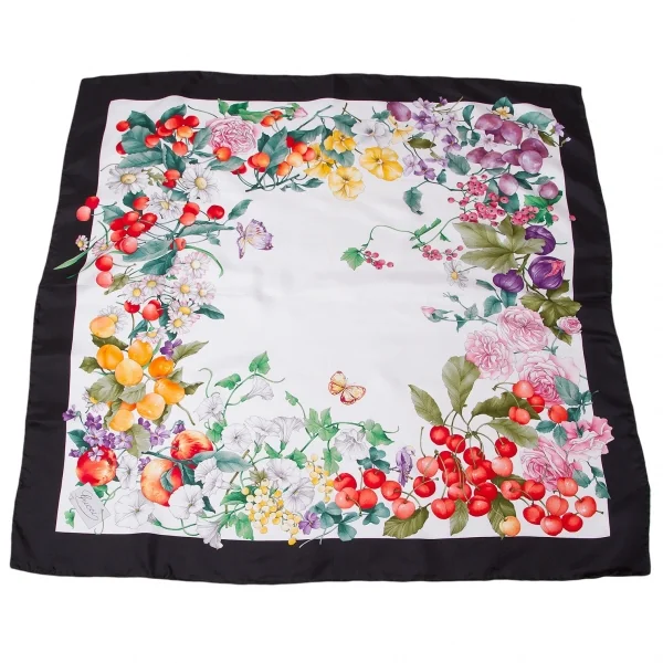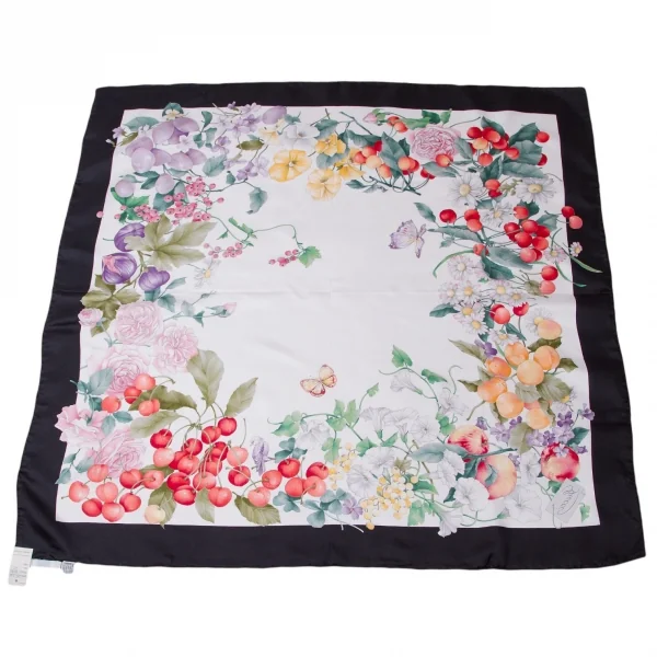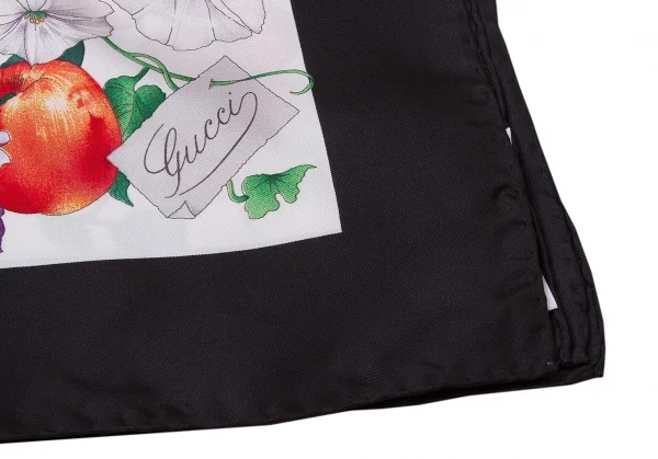新品!グッチGUCCI フルーツ柄スカーフ 黒オフオレンジ緑他