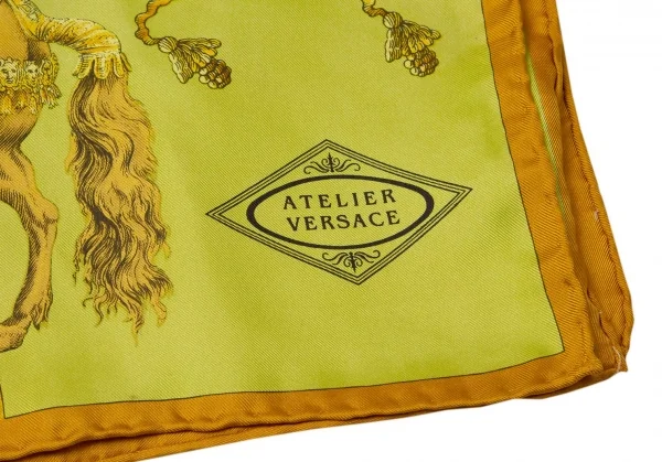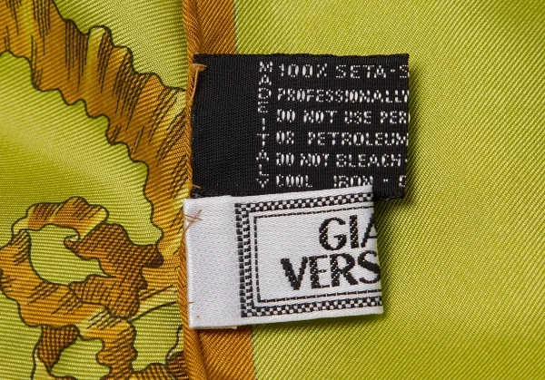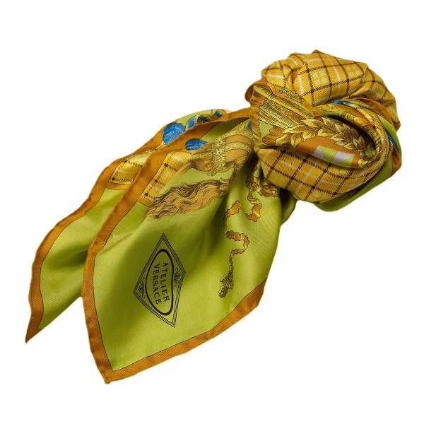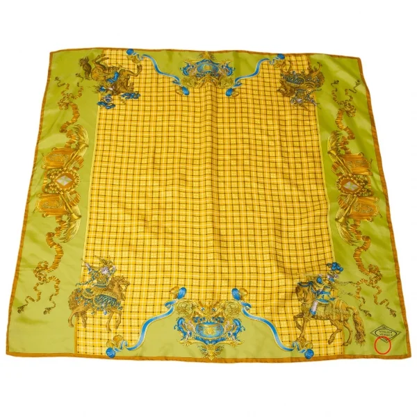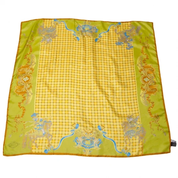 ジャンニ ヴェルサーチGIANNI VERSACE シルクブロックチェクプリントスカーフ 黄緑マスタード青他