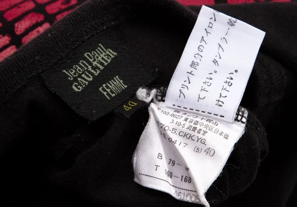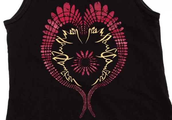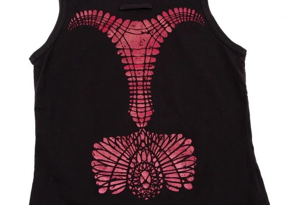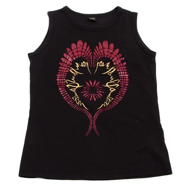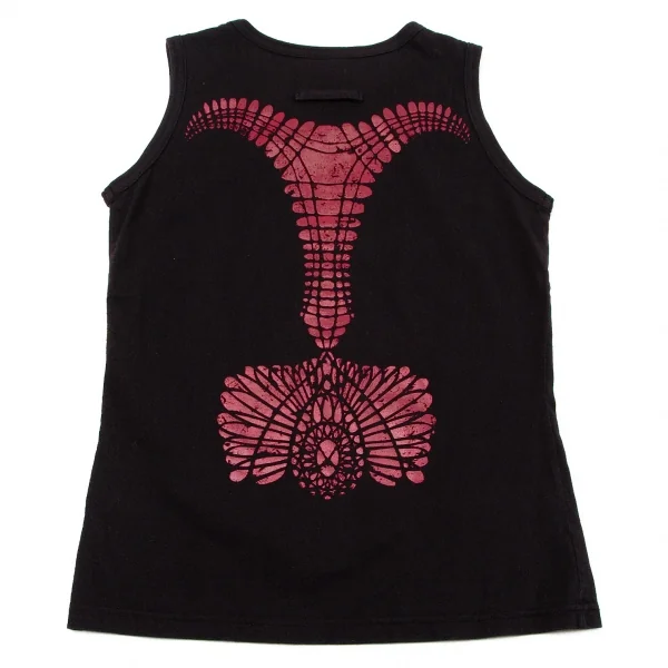 【SALE】ジャンポールゴルチエ ファムJean Paul GAULTIER FEMME コットンノースリーブプリントタンクトップ 黒エンジベージュラメ40