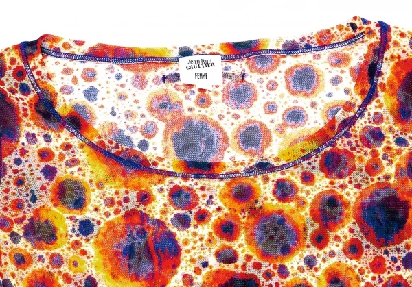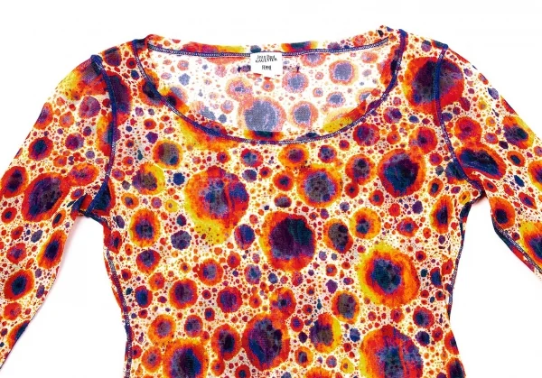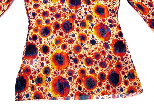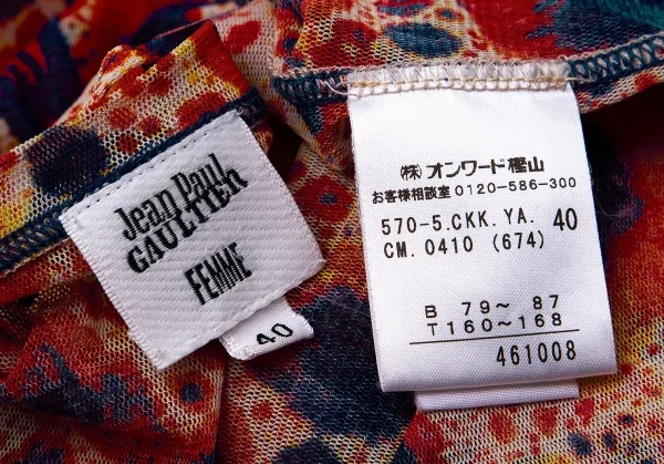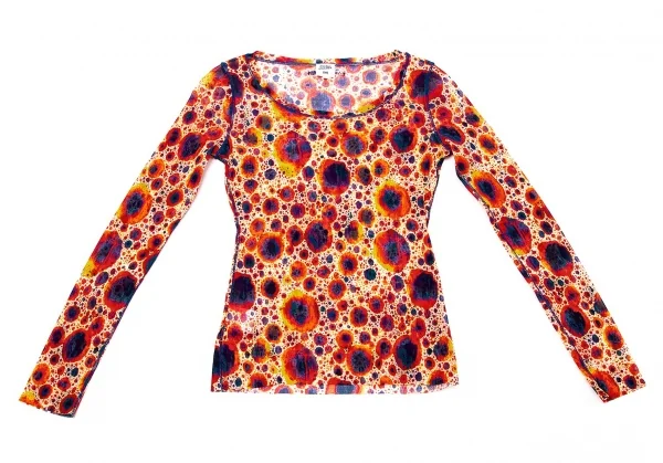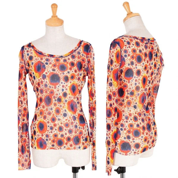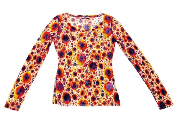 ジャンポールゴルチエ ファムJean Paul GAULTIER FEMME プリントパワーネット長袖トップス 赤紺黄ベージュ40