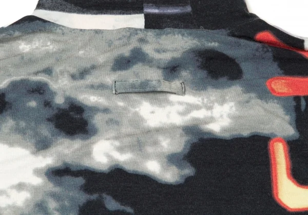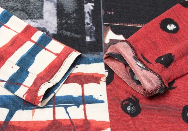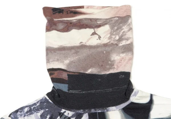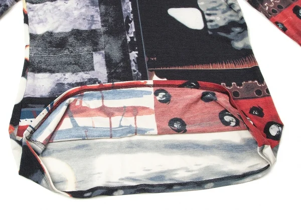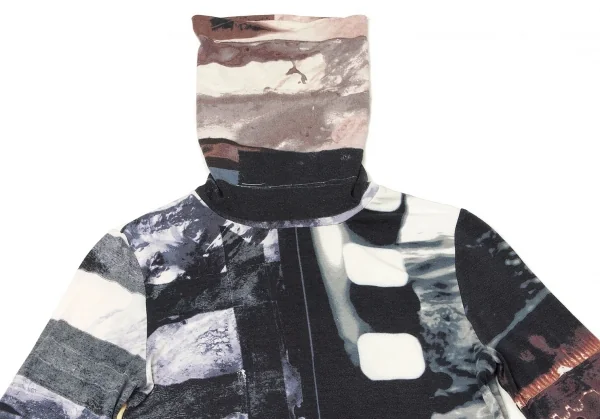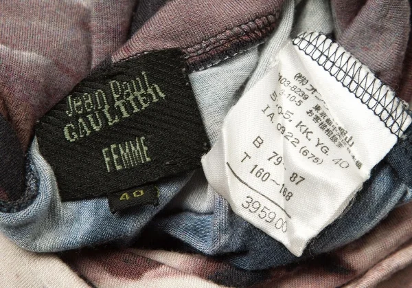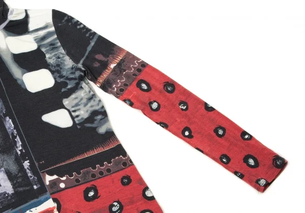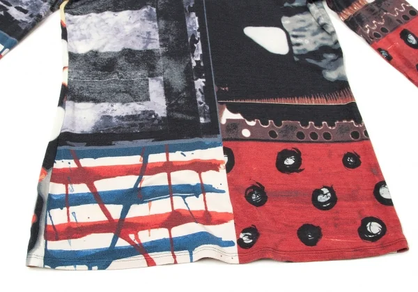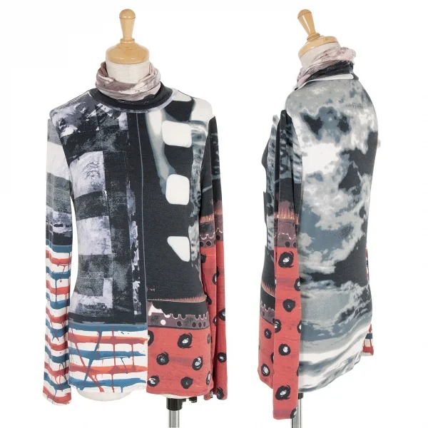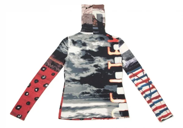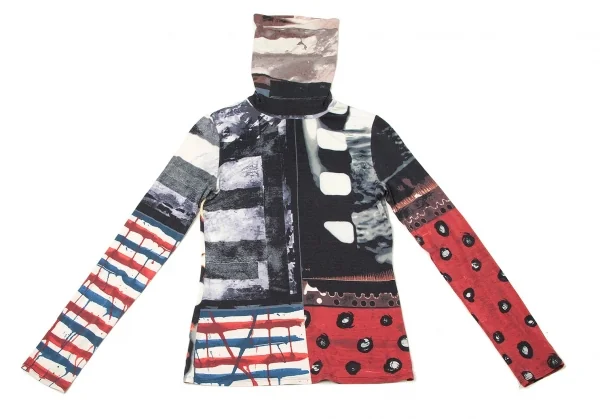 ジャンポールゴルチエ ファムJean Paul GAULTIER FEMME レーヨンポリプリント切替ハイネック長袖カットソー 紺ブルーエンジ他40