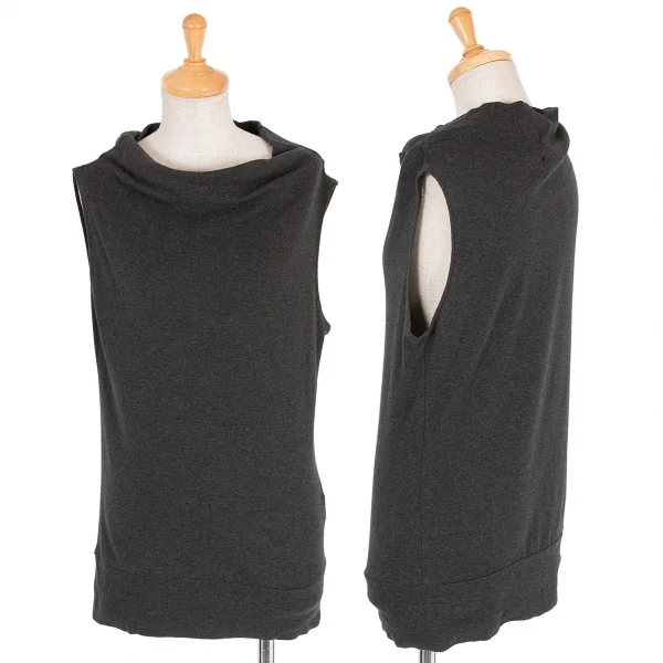【SALE】ヨウジヤマモト ノアールYohji Yamamoto NOIR コットンオフタートルネックノースリーブトップス 濃杢グレー3