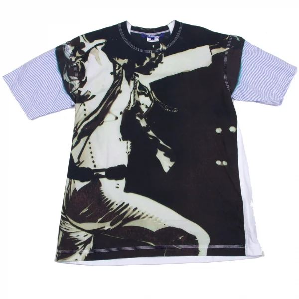 ジュンヤワタナベマンコムデギャルソンJUNYA WATANABE MAN COMME des GARCONSプリント切り替えTシャツ 黒白他M