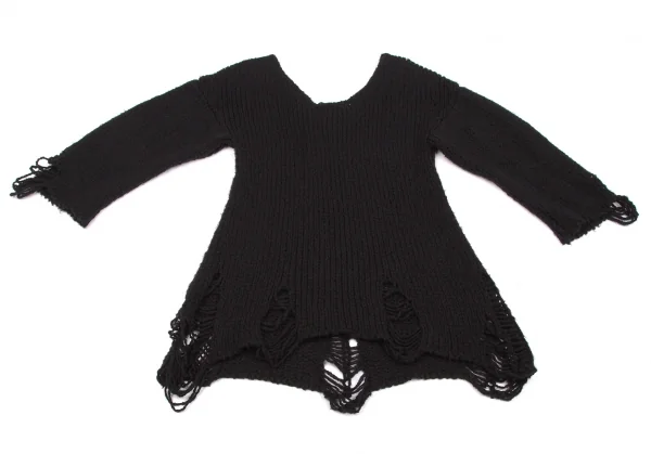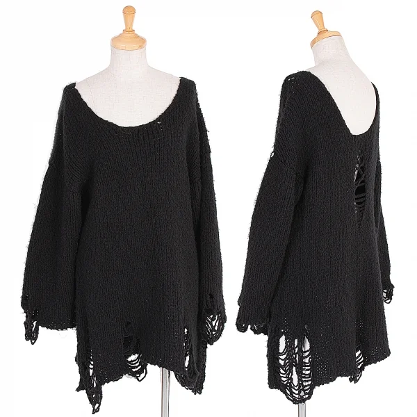 ミハラヤスヒロMIHARA YASUHIRO ウールアクリルクラッシュデザインニット 黒M