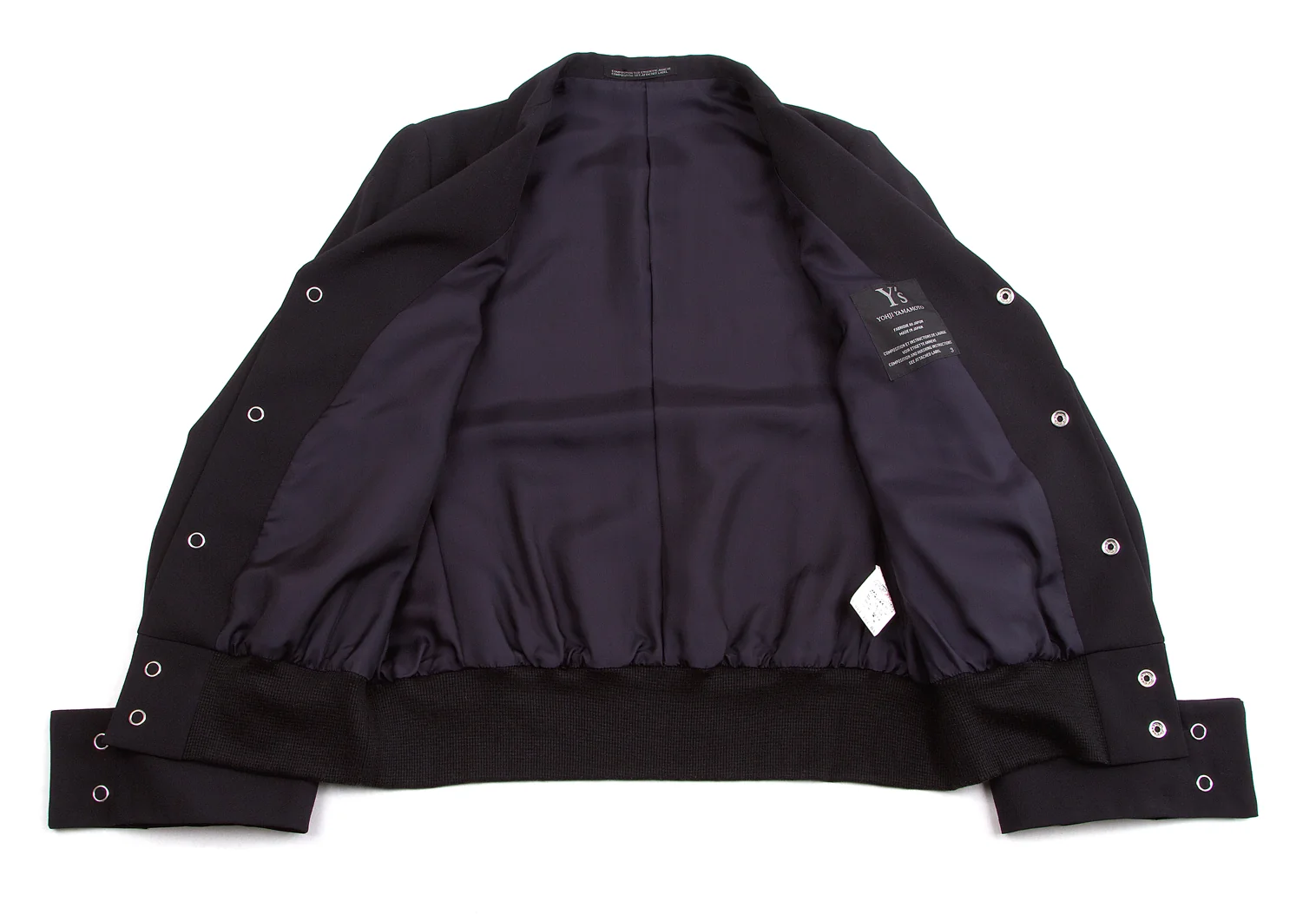 【SALE】ワイズY's ウールギャバ裾リブボタンデザインジャケット 紺黒3